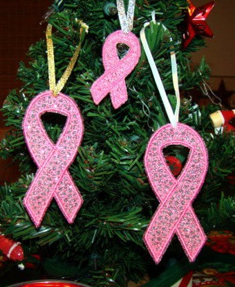 Free Standing Lace Embroidered Ornament - Breast Cancer Ribbon-Pink